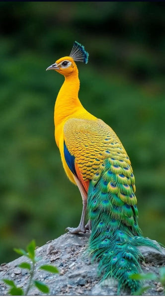 Experience our top selling product - men's colorful dress socks, available in blue, green, yellow, and a touch of gray, inspired by the breathtaking color schemes found in the natural world. These socks have it all and are a perfect fit for the whole squad, bringing the vibrant and unique shades of nature to your daily style. Rock these socks and take a piece of nature with you wherever you go. Don't miss your chance to add these socks to your collection today! The Yellow Peafowl, also known as the Javanese peacock or Pavo muticus, can be found in the lush tropical forests of Southeast Asia. Known for its stunning green and bronze feathers, black wings with a hint of blue, and an elegant, vertical dark green crest.