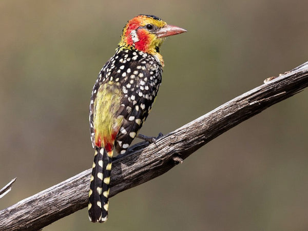 Indulge in food, fitness, fashion and fun with our versatile, comfy, durable and beautifully designed sublimated/all-over socks! These socks feature the unique plumage of the red and yellow barbet, with its black spots and vibrant colors. A playful bird, the barbet has a stylish black forehead and a hint of a crest on its head. Its neck is a fiery mix of red and yellow, while its back is adorned with striking white spots. With a touch of brown and a splash of cream, its tail creates a stunning banded pattern. Even its feet are a stylish blue-grey! Get ready to strut your stuff in these quirky, fun socks!